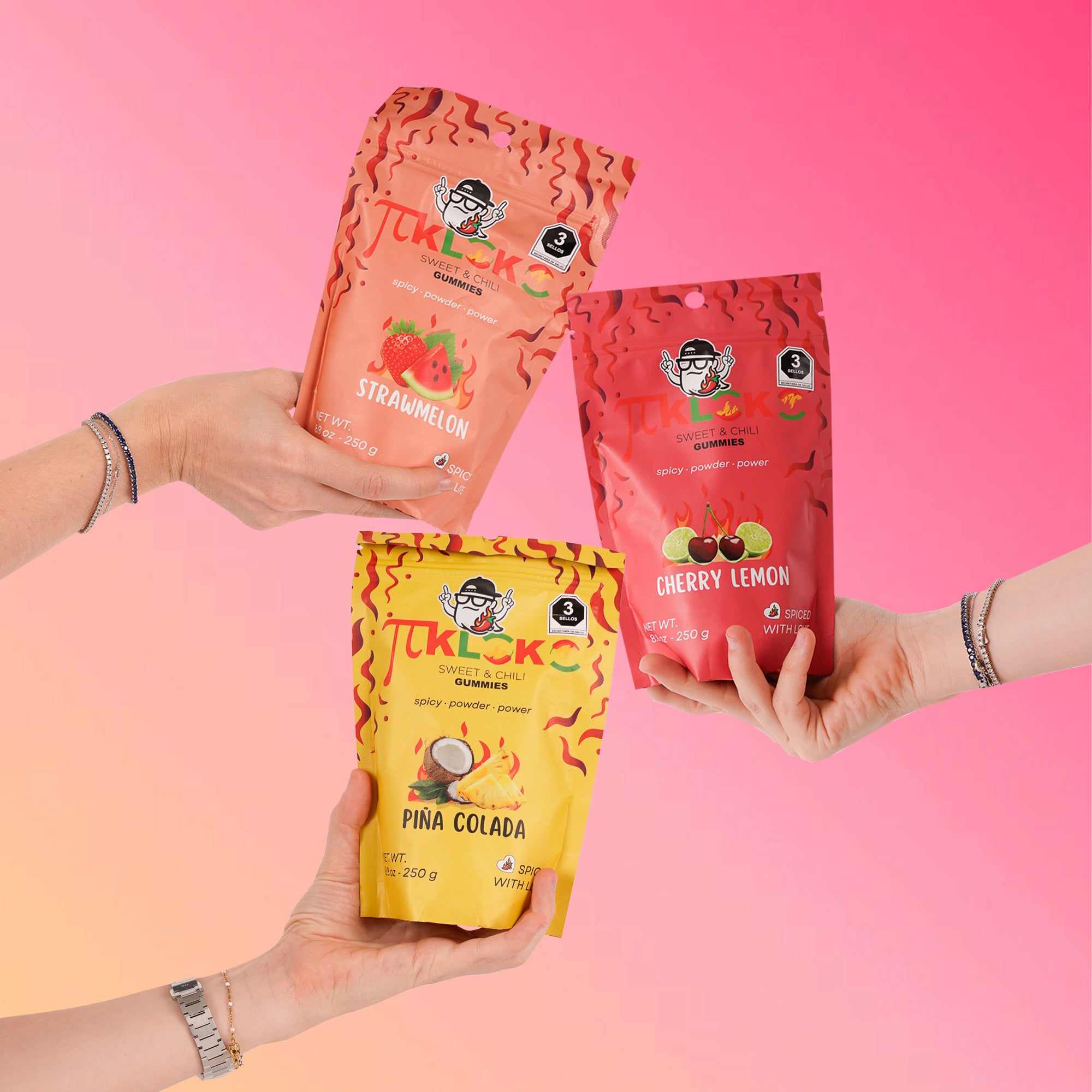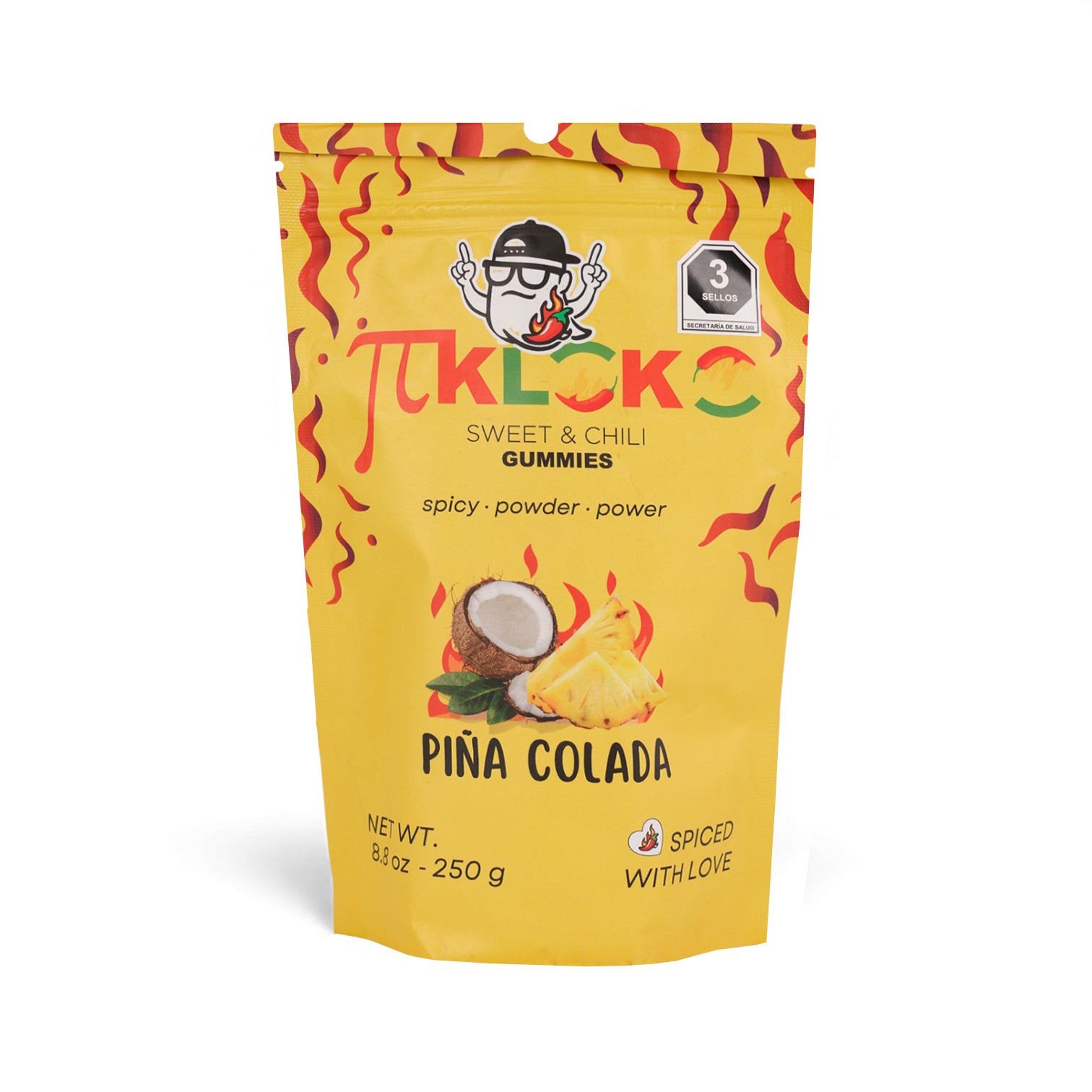 Gomitas de piña + coco cubiertas con chamoy Pikaloco y chilito Spicy Plus (picoso), luego freeze-dried (liofilizadas) para una textura crujiente, aireada y ultra adictiva. Sabor tropical con final picante, cero pegajosas.